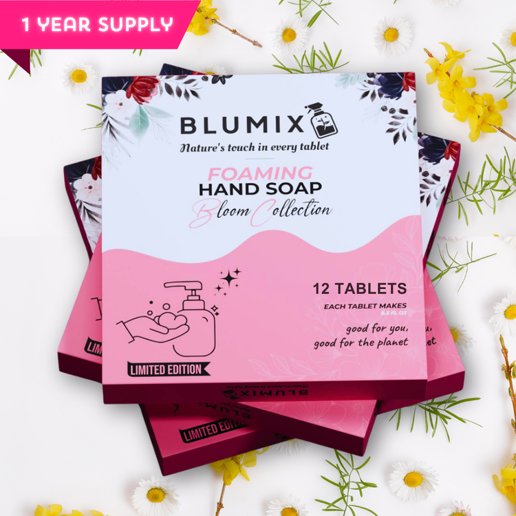 Say hello to the Bloom Collection—our most luxurious, skin-loving foaming hand soap refills yet! Now available in four blooming floral scents: Rose, Jasmine, Ylang Ylang, and Lilac. Infused with our best-ever hydrating formula, each biodegradable tablet turns water into a rich, creamy foam that cleanses gently while leaving your hands soft and delicately scented.