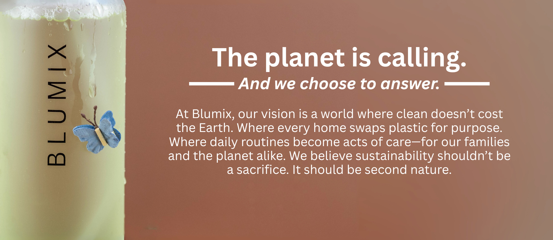 Over 8 million tons of plastic enter our oceans every year—choking wildlife and damaging ecosystems. Most of it comes from single-use packaging tossed without a thought. Blumix was born to change that. With refillable bottles and just-add-water tablets, we make everyday cleaning cleaner—for your home and the planet.